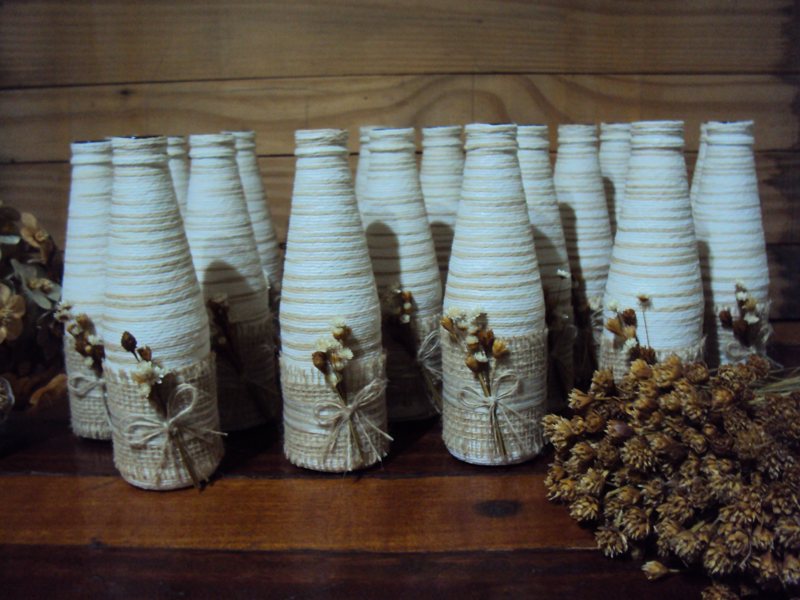 20 – Garrafas decoradas para casamento rústico