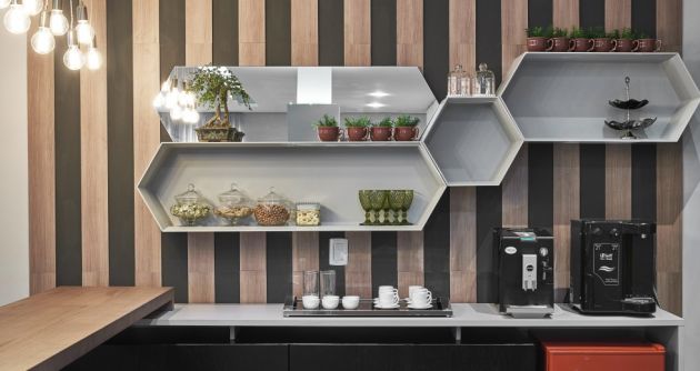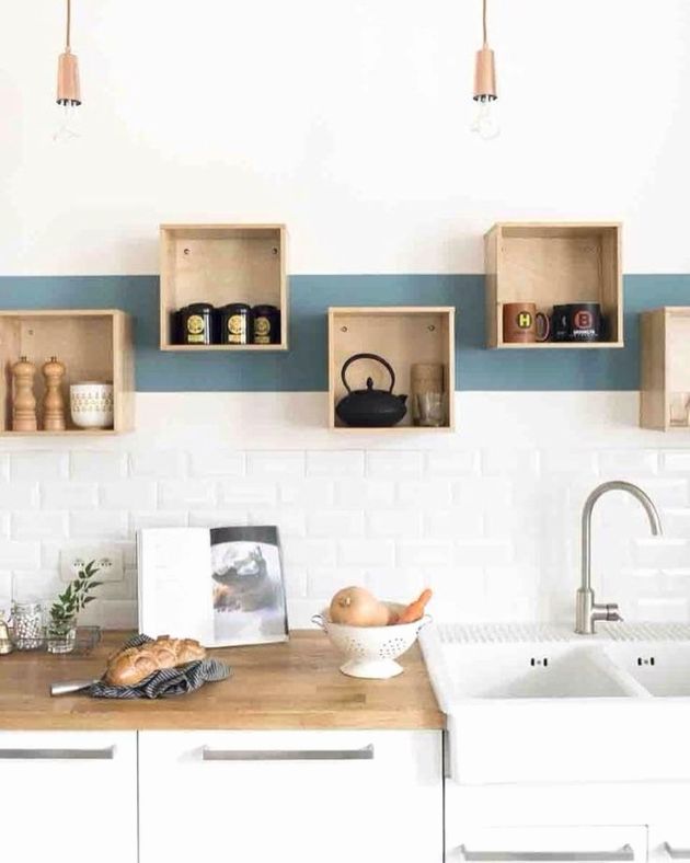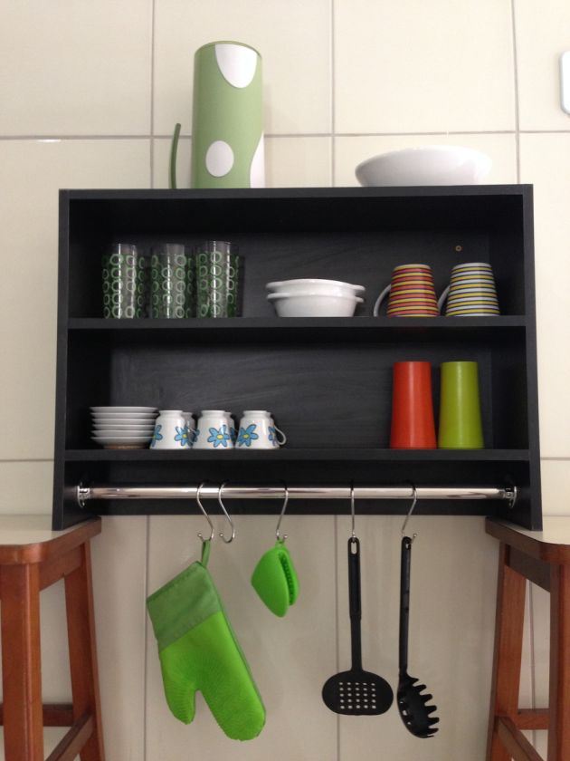A sua cozinha também pode ter um nicho ou vários nichos ou ainda ter um belo mix entre nichos e prateleiras. Pendure os utensílios de cozinha nestes nichos, através de ganchos ou através de até um varão que você pode ter fixado em seu nicho ou em sua prateleira.