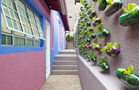 Uma opção bem interessante para quem não sabe o que fazer com suas garrafas pets é utilizá-las para decorar o muro ou qualquer parte externa de sua casa. E se quiser deixar esta decoração ainda mais sustentável você pode plantar flores ou temperos diversos nestas garrafas, assim você deixa de jogar plástico no meio ambiente e ainda traz a natureza para mais perto de você e pode deixar suas refeições mais apetitosas, caso opte também por temperos.