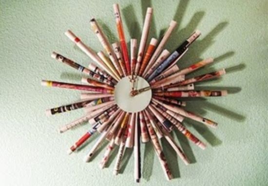 Utilizar papel, papelão ou jornal para confeccionar objetos de decoração ou objetos que você utiliza no dia a dia também é ótimo recurso para ser mais sustentável. E você pode fazer desde vasos e cestas com canudos de revistas e jornais até objetos mais elaborados, como relógios de parede.