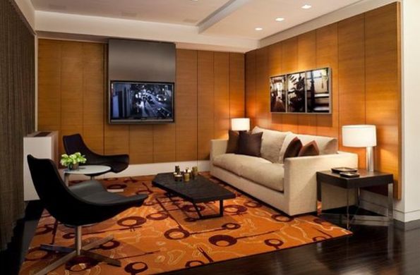 A madeira pode estar presente em sue ambiente se forma discreta, em um painel pequeno, como, por exemplo, apenas atrás de sua televisão. E este painel pode ser plano, com apenas madeira ou possuir ainda espaços em sua composição pra você acomodar uma bonita iluminação diferenciada ou ainda objetos decorativos, juntamente ou não com esta iluminação especial.