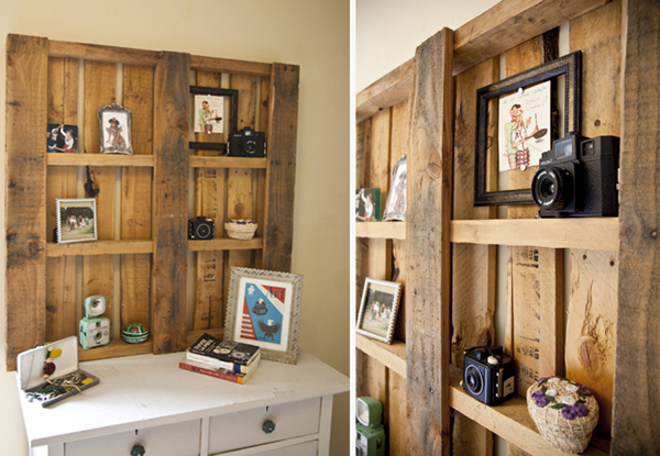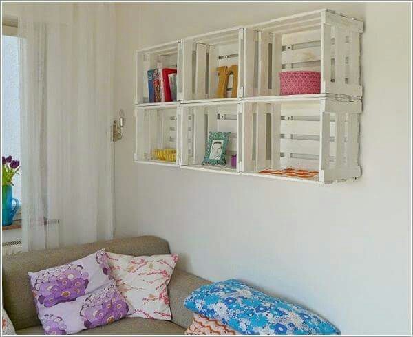 decoração com paletes e caixotes estante