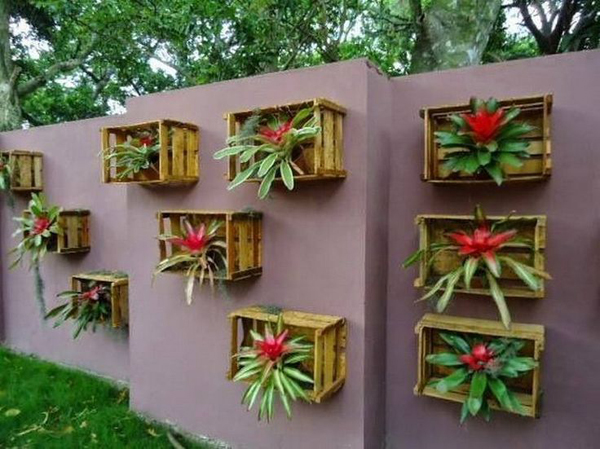 decoração com paletes e caixotes muro
