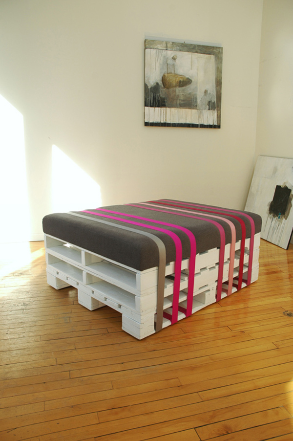 Comece separando todos os materiais que você vai utilizar em seu artesanato. Forre o local onde você vai trabalhar com a sua peça, com jornal velho, papel velho, papelão, tecido velho ou plástico. Pinte os 4 pallets com a cor de tinta acrílica escolhida. Você pode pintar com várias camadas apenas as partes da borda, as partes que vão aparecer, e deixar a parte interna de cada palete sem uma pintura mais uniforme, apenas com uma camada. Deixe secar. Para finalizar a sua peça, basta colocar os colchão por cima dos 4 pallets alinhados. E está pronto!