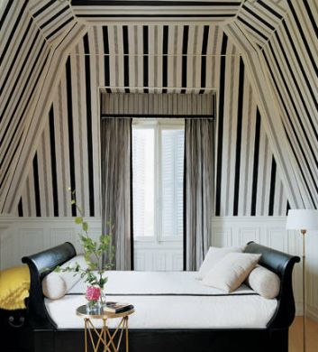 Dependendo das cores utilizadas nas listras e dos móveis e objetos de decoração que você combina no ambiente, o espaço pode ganhar um estilo diferente. Para décor mais sofisticado ou clássico utilize também cores com este estilo e móveis e outros elementos também mais clássicos.