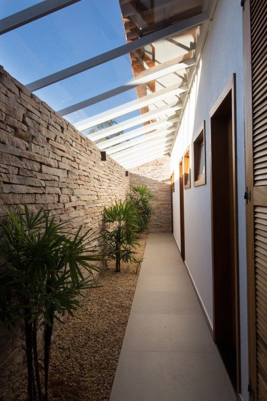 Se você utilizar filetes de pedras na área externa de sua casa, você pode combiná-la tanto com outros materiais também rústicos quanto com elementos mais delicados, como posicioná-las perto de um jardim bem florido, por exemplo.