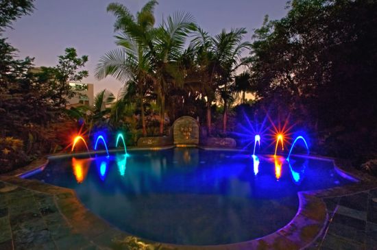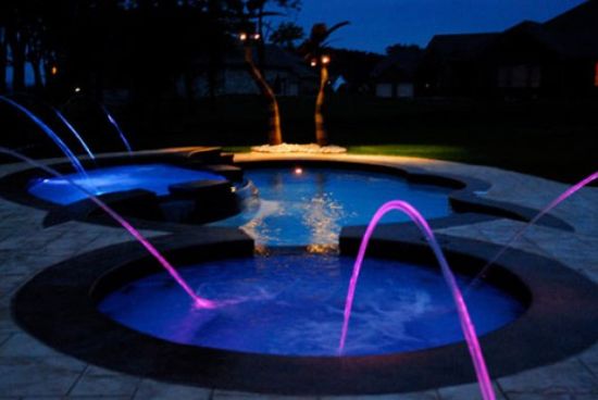 E além dos formatos diferentes você também pode acrescentar elementos não convencionais para sua piscina, como cascatas de pedra ou investir em uma cor não tradicional para os azulejos da piscina ou conseguir uma piscina colorida graças às luzes específicas para este fim.