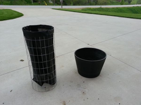 Comece deixando a tela em formato cilíndrico e com a espessura que possa ser acomodada dentro do vaso escolhido.