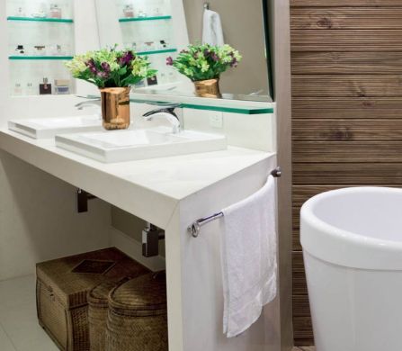 Flores alegram e diferenciam qualquer ambiente, e isso não seria diferente em seu lavabo. Aposte em vasinhos com flores delicadas, se você gostar do estilo mais romântico; ou em flores mais coloridas, com cores intensas e vibrantes se você gostar de um estilo mais alegre.
