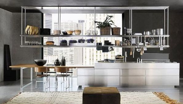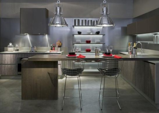 Na cozinha balcões de metal fazem dupla perfeita com luminárias e pendentes de metal com design diferenciado. E a cozinha é o ambiente que mais aceita peças de metal, aliás, quanto mais metal você investir em sua cozinha, mais aparência futurista e limpa ela terá.