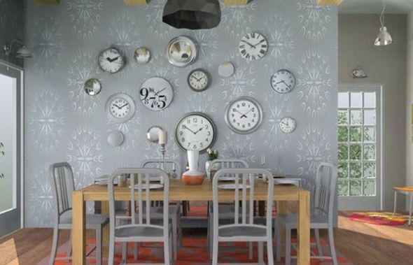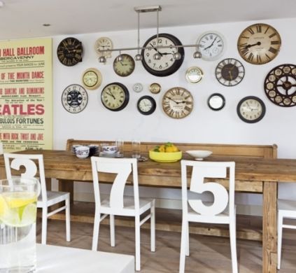 Se você gosta muito de relógios, tem uma coleção de peças especiais ou quer um ambiente com visual totalmente diferenciado, você pode investir sem medos em cômodo decorado com muitos relógios na parede ou muitos relógios espalhados sobre um aparador ou mesinha de apoio.