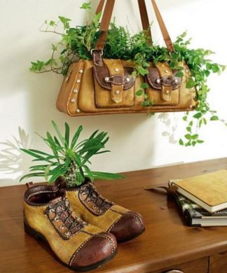 E falando em utilizar outros itens como vasos, você pode deixar a decoração de sua casa com visual bem inusitado, optando por peças não convencionais para usar como vasos, como botas antigas ou até mesmo bolsas velhas.