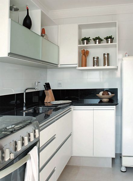 Para otimizar o espaço de uma cozinha pequena é preciso investir pesado em armários e nichos fixados na parede e até mesmo na parte mais alta da parede, para que o proprietário tenha espaço para guardar os utensílios da cozinha. Escolher fogões menores ou optar por fogareiros também é uma ótima saída.