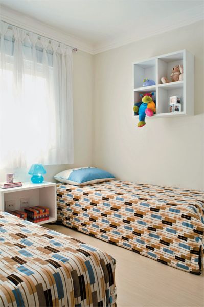 O quarto das crianças pode ter decoração bem compacta, com o mínimo possível de móveis para manter o visual interessante e atender a necessidade das crianças de guardarem os seus objetos pessoais.
