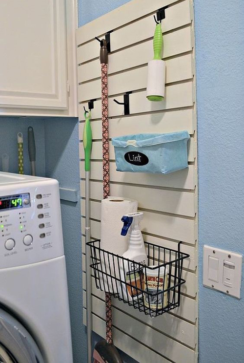 A decoração de área de serviço para apartamento pequeno pode explorar o espaço atrás da porta de área de serviço. Fixe muitos itens que podem receber produtos de limpeza, as roupas ou utensílios típicos deste cômodo.
