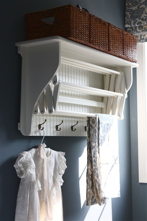 O varal da sua área de serviço pequena pode ser fixado no teto. Se as vigas forem aparentes, fixe o varal nestas vigas, ou improvise um suporte para fixar o seu varal na parte alta da sua área de serviço.