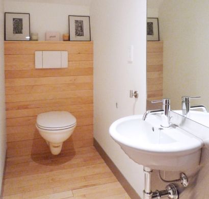 A variedade de materiais que você pode utilizar para fazer esta combinação é muito grande. Você pode investir em cerâmicas brancas, em pastilhas brancas, em tinta, em louças de banheiro e em mais uma infinidade de peças brancas; e também você pode utilizar a madeira em sua forma original (porém tratada corretamente para ficar no banheiro, onde recebe muita umidade e água) em cerâmicas com aspecto de madeira (grande novidade do setor) e em móveis de madeira, como armarinhos para banheiro.