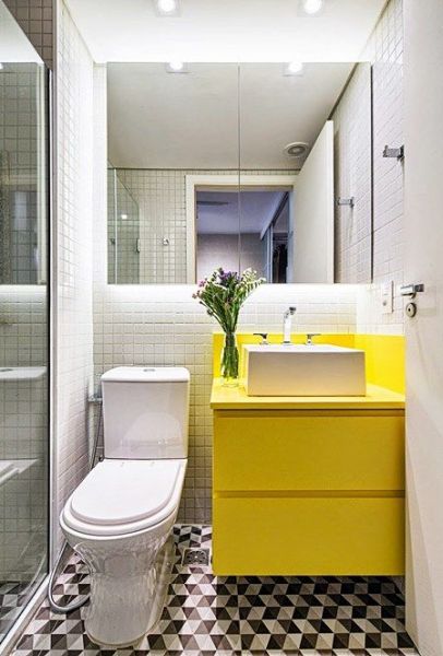 Cores mais intensas e vibrantes estão liberadas se você gostar de cores e não quiser fazer o seu banheiro parecer visualmente maior.