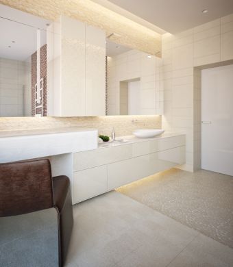 Se você quiser um visual mais “quente” para seu banheiro totalmente branco, deve investir em iluminação com esta característica. Luzes diretas e indiretas com tonalidades amareladas garantem aquele aconchego e acolhimento mais “quente” que alguns buscam para ambientes totalmente brancos, mesmo sendo um banheiro.