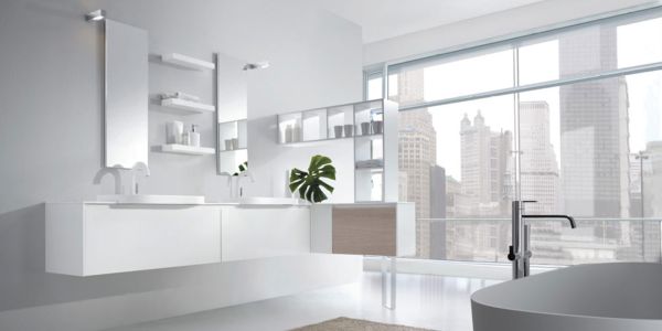 A decoração de banheiros brancos pode ter vários detalhes interessantes (Foto: Divulgação)