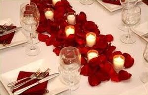 A decoração de mesa dos convidados pode ser bem simples (e barata), porém com visual bem impactante. A maneira mais fácil de conseguir uma bela decoração para a mesa de seus convidados e entrar no clima do dia dos namorados é espalhar por toda a mesa pétalas de rosa vermelha ou rosa cor de rosa e arrematar o visual com algumas velas.