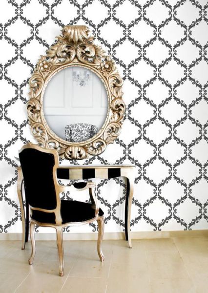 Uma peça muito barata e fácil de ser agregada a seu ambiente é o adesivo de parede com motivos de arabescos.