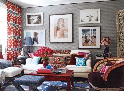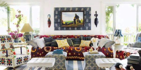 Outra maneira de combinar várias estampas é optar por estampas da mesma “família” ou visualmente parecidas, como as estampas étnicas (também em alta no universo da moda e no segmento da decoração), que mesmo com cores e padrões diferentes deixam o ambiente harmônico por serem semelhantes visualmente.