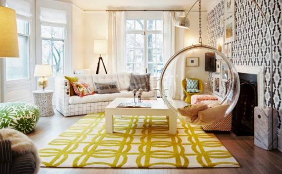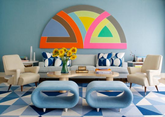 E para você que adora exagerar em tudo, até mesmo no décor de sua casa, pode misturar várias formas geométricas e vários elementos diferentes, podendo acrescentar até móveis com formatos geométricos. Pufes ovais mesclados a almofadas com estampas geométricas, quadros com formas geométricas e até mesmo o piso ou paredes com elementos geométricos, resultam em decoração harmônica quando usadas várias tonalidades de uma mesma cor em todo o ambiente, e acrescentando uma ou duas cores contrastantes para balancear todo a decoração.