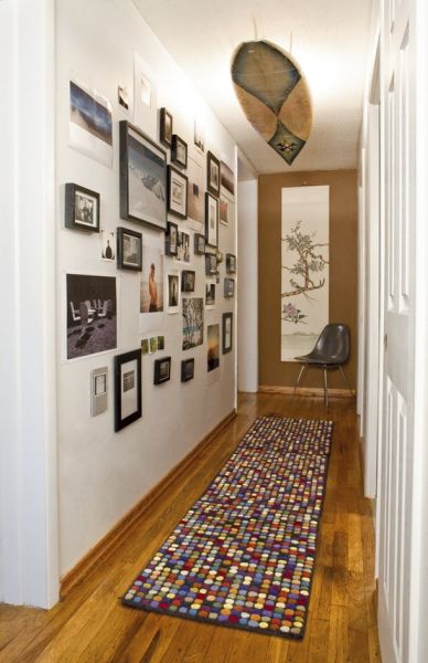 Se o seu orçamento está apertado, mas você quer redecorar o seu corredor estreito, você pode investir em decoração com quadros pendurados nas paredes do corredor em questão. Você também pode decorar a parede do final do corredor e não apenas as paredes laterais do seu corredor. E se o seu orçamento está apertado até mesmo para comprar muitos quadros, além de utilizar os quadros que você já tem em casa você também pode pendurar porta-retratos na parede, e para isso basta retirar o suporte da parte detrás do seu porta-retrato e fixar um gancho, caso ele não possua.