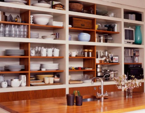 Mas caso você queira optar por uma cozinha inteira decorada com prateleiras ou armários abertos, saiba que terá que limpar muito bem cada um dos seus utensílios todos os dias, para não cumular sujeira, bichinhos que normalmente ficam ao redor da luz e a famigerada gordura que sempre se acumula pelos cantinhos de toda a cozinha. E para deixar sua cozinha aberta muito mais charmosa e com aparência muito bem organizada, separe os utensílios por “famílias” e por cores, assim mesmo que uma ou outra peça estiver sem espaço definido, a organização não será afetada.