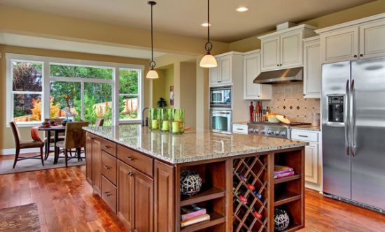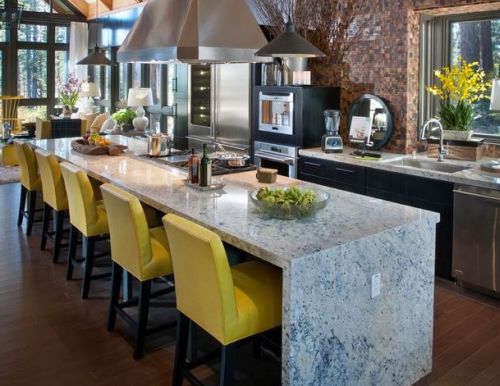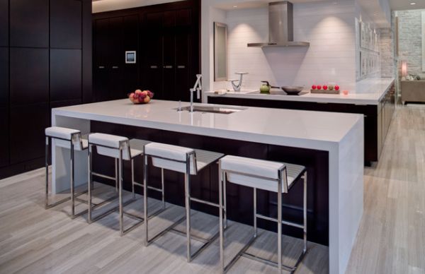 E você pode também utilizar somente a ilha de sua cozinha para preparar os alimentos, sem a necessidade de bancadas nas paredes ao redor de sua cozinha. E se você possuir espaço útil disponível incorpore uma ilha comprida, que permita também sentar-se e alimentar-se nesta peça, além de preparar os alimentos.