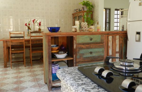 Móveis, ilhas ou balcões confeccionados com madeira de demolição podem ser incorporados até mesmo em uma cozinha que já possua outro estilo de decoração, chegando a poder ser incorporados até mesmo em uma cozinha que já possua uma decoração mais sofisticada. E quanto mais itens você acoplar a esta peça confeccionada com madeira de demolição, mais interessante ficará toda a decoração de sua cozinha.
