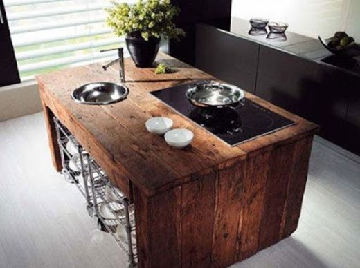 Não há quantidade específica de madeira de demolição para você utilizar em sua cozinha, você pode incorporar um item à decoração de sua cozinha confeccionado com este tipo específico de madeira ou utilizar a madeira como elemento principal em toda a decoração, estando presente nas paredes, chão, móveis, balcões e ilhas.