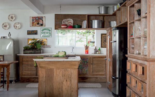 A madeira de demolição está sendo muito utilizada e explorada atualmente e tanto em detalhes quanto em um cômodo inteiro. E a decoração de cozinhas com madeira de demolição está ganhando a cada dia mais espaço. E se você pensa que a madeira neste caso específico é utilizada apenas em revestimento para a parede, reveja seus conceitos, pois móveis e peças para cozinhas podem vir sozinhas ou muito bem acompanhadas de outros elementos confeccionados também com madeira de demolição, resultando em um ambiente com visual rústico, porém bem interessante.