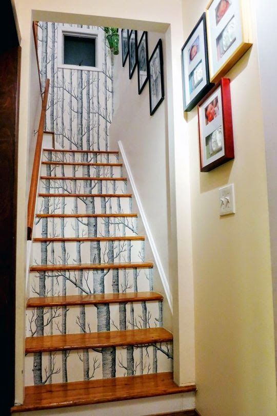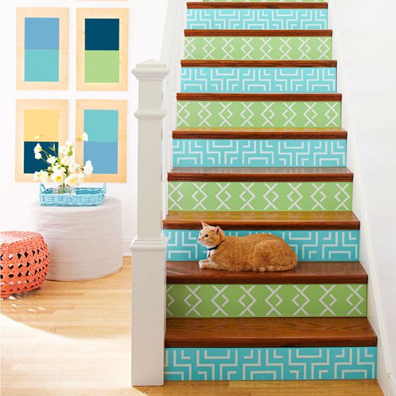 Caso você esteja com um orçamento mais folgado você pode revestir toda a escada com um papel de parede, por exemplo.