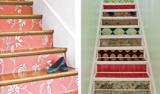 Você pode aproveitar de outras maneiras os retalhos de papel de parede que você usou para revestir algum cômodo, como as maneiras mais tradicionais, caso tenha muitos retalhos em casa. E se este papel de parede possuir alto-relevo, ainda mais interessante ficará a sua escada.