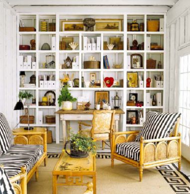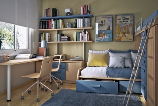 Para acomodar todos os seus pertences você pode investir em estantes ou prateleiras do teto ao piso e com muitas divisórias. Outra alternativa é apostar em pequenos nichos fixados na parede, porém neste caso você pode perder um espaço precioso se você utilizar nichos com molduras muito largas ou espaçosas. O melhor em ambientes pequenos é sempre utilizar peças mais finas ou estreitas, independente de que peça seja esta, mesmo sendo um móvel.
