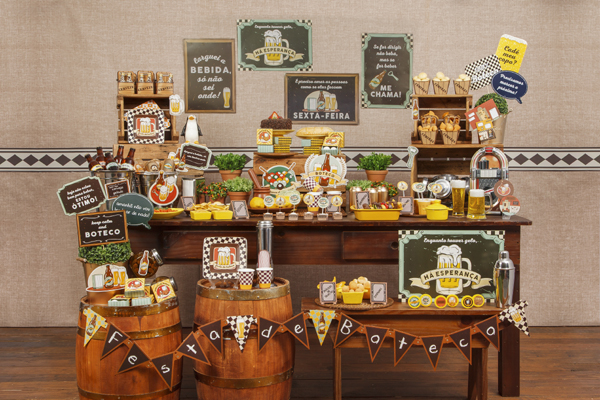 Os artigos para festa boteco podem ser os mais diversos possíveis. Invista em sua criatividade no momento de montar, você mesmo, o décor da sua festinha boteco.