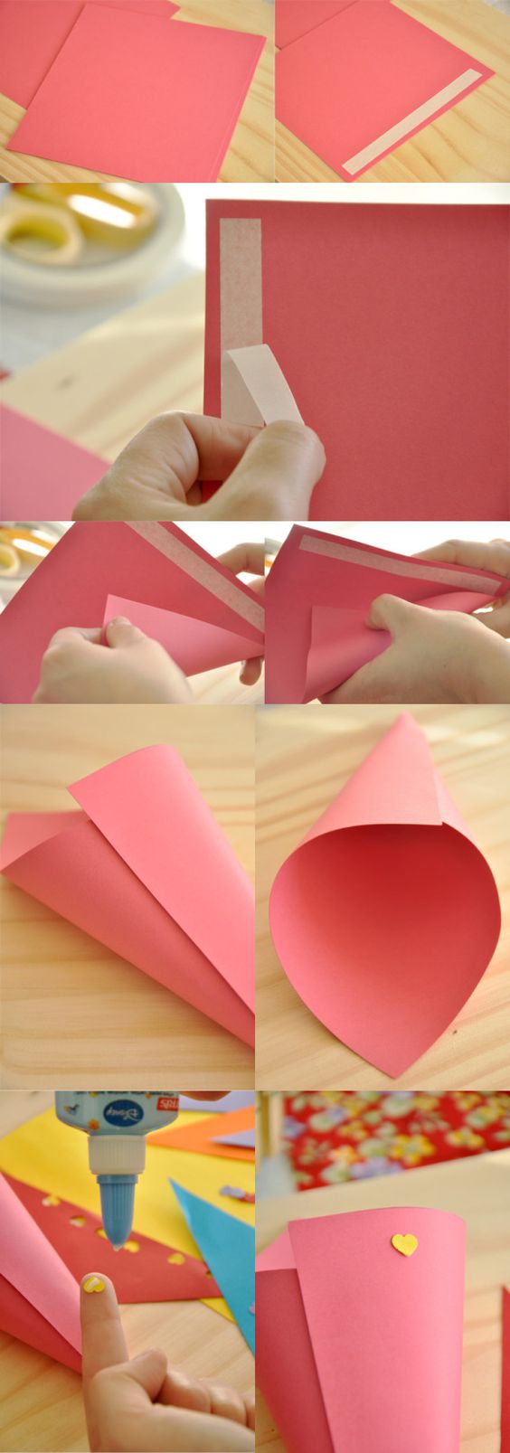 Faça você, em sua casa, algumas peças para decorar a sua festa junina, vale decorar recipientes para os alimentos ou fazer as pecinhas que serão penduradas ou coladas na parede. Como exemplo você pode fazer cones de papel para acomodar pipoca, amendoim ou outro alimento junino.
