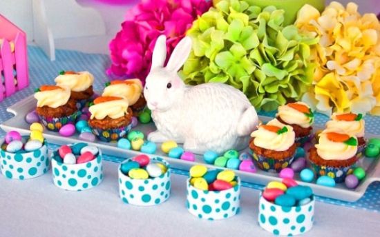 E para comemorações em casa, você pode montar uma bonita mesa com muitos enfeites de coelhos, cenouras e ovos e fazer a alegria dos seus convidados. E uma boa dica é fazer um café da manhã comemorativo, assim você pode aproveitar o solzinho gostoso da manhã para festejar.