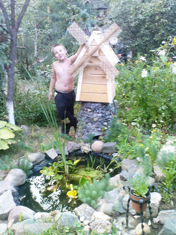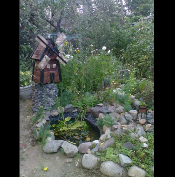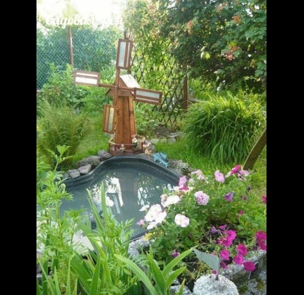 A decoração de jardim com lago e catavento é muito especial (Foto: lifefreeenergy.com)
