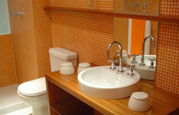 E para uma decoração total com marcenaria, até mesmo no chão, prefira as madeiras tratadas para ambientes úmidos, como as madeiras usadas nas áreas externas da casa ou nos decks, assim você poderá higienizar seu banheiro sem grandes preocupações com a conservação de sua madeira, porém você deve manter seu banheiro sempre bem seco e estar ciente de que mesmo a madeira sendo tratada corretamente depois de alguns anos apresentará a necessidade de ser trocada.