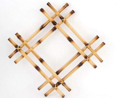 Agora, enrole pedaços de fio de cobre nesta junção dos bambus. E faça o mesmo processo nos outros cantos do enfeite, juntando os bambus.