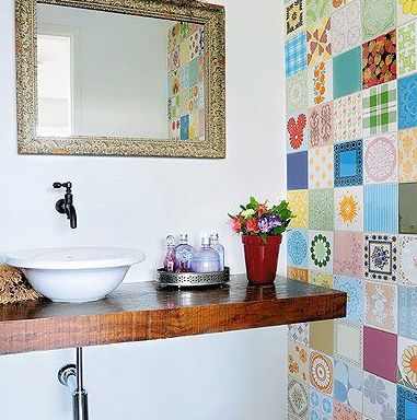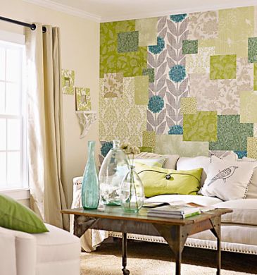 Você pode utilizar papéis de parede, papéis comuns, tecidos ou até mesmo azulejos para montar um belo patchwork na parede de seu cômodo, você deve somente escolher o material mais adequado para cada ambiente, como utilizar azulejos em locais que possuem muita umidade, como banheiro e cozinha, ou então utilizar uma papel de parede impermeável, desenvolvido especialmente para receber pingos d’água e não se deteriorar.