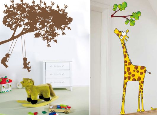 Uma maneira fácil de decorar a parede do quarto de seu filho e que você mesma pode fazer é utilizar adesivos de parede com temas ou motivos bem infantis, como adesivos com bichinhos, com personagens e filmes ou desenhos animados ou ainda com árvores, estrelas ou flores.