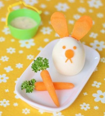 Se você vai receber em casa alguma criança para o almoço de Páscoa, você pode também investir em comidinhas com o tema da Páscoa. Um ovo cozido e “retalhos” de cenoura podem se transformar em um coelhinho simpático e nutritivo que as crianças adorarão devorar.