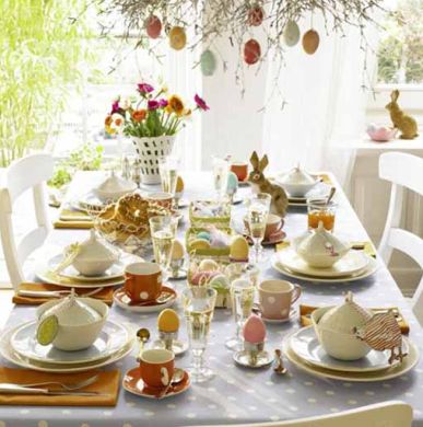Para a decoração da mesa do almoço de Páscoa você pode distribuir ovos de galinha comum por toda a mesa. E estes ovinhos podem estar em sua cor original (branco ou marrom) ou serem pintados por você com tinta para artesanato.