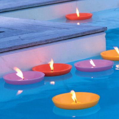 Velas em formato floral é uma opção bem legal para utilizar na piscina. Elas podem ser utilizadas em várias cores. Outra sugestão bem legal é a vela em formato de barco.