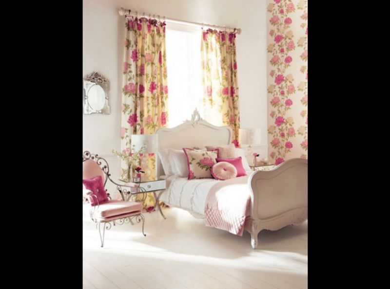 O papel de parede pode estar em apenas uma parede ou em uma parte da parede ou estar em todas as paredes do quarto, caso você goste de muita informação em um local. As cortinas podem ser confeccionadas com um tecido semelhante ou idêntico ao do papel de parede. E aqui vale encomendar o papel de parede e o tecido com o mesmo padrão. Ou ainda fixar o tecido na parede como se fosse um papel de parede.
