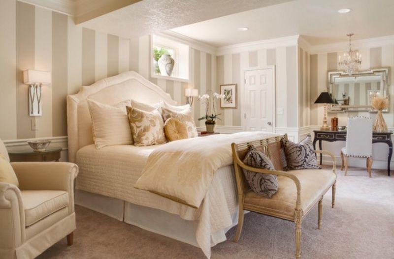 O papel de parede listrado também pode ser incorporado a um ambiente em que se quer deixá-lo mais romântico, basta escolher as cores mais claras para as listras e coordenar este papel de papel com outros complementos com estilo romântico, como as flores.